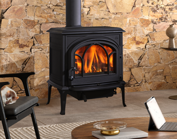 Redefining warmth and elegance in your home, the Jøtul F 445 combines the best aspects of a typical non-catalytic wood stove with groundbreaking Jøtul High Flow™ Combustor technology to create a clean-burning wood stove that operates without the need for a bypass. The F 445 offers an unparalleled view of dancing flames, featuring a sleek exterior and a spacious firebox, inviting you to relax and unwind in its comforting glow.